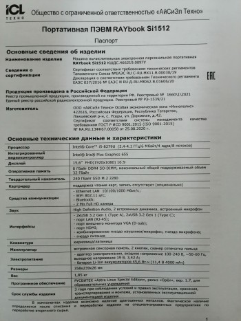 НОУТБУК \26,20,11,110-00000165 ПЭВМ RAYbook модели Sil512 3 ШТ 16,08,2022Г |
